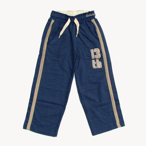 Blauwe joggingbroek van Boy Star met applicaties en beige biezen.